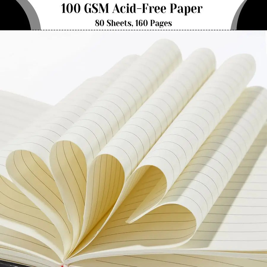 Quality Thick Paper this hardcover notebook with pen loop is made of 100GSM paper, smooth to the touch, not ghosting and bleedthrough easily, suitable for most pens, such as fountain pens, ballpoint pens, water pens, pencils and markers for a pleasant writing experience