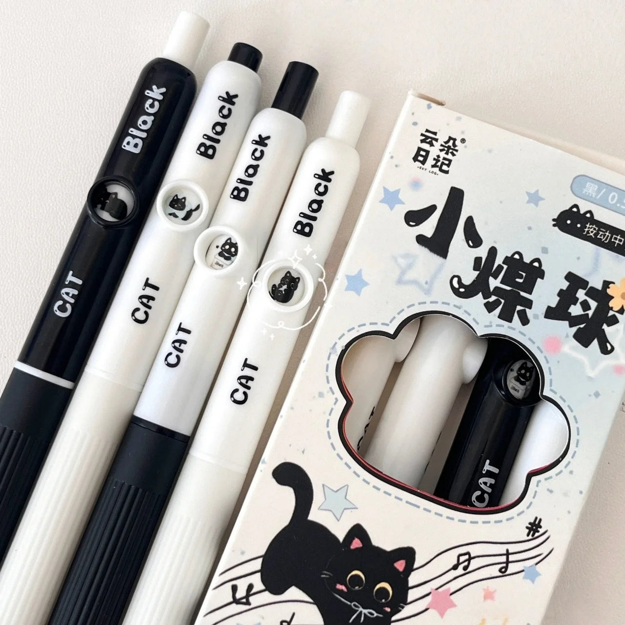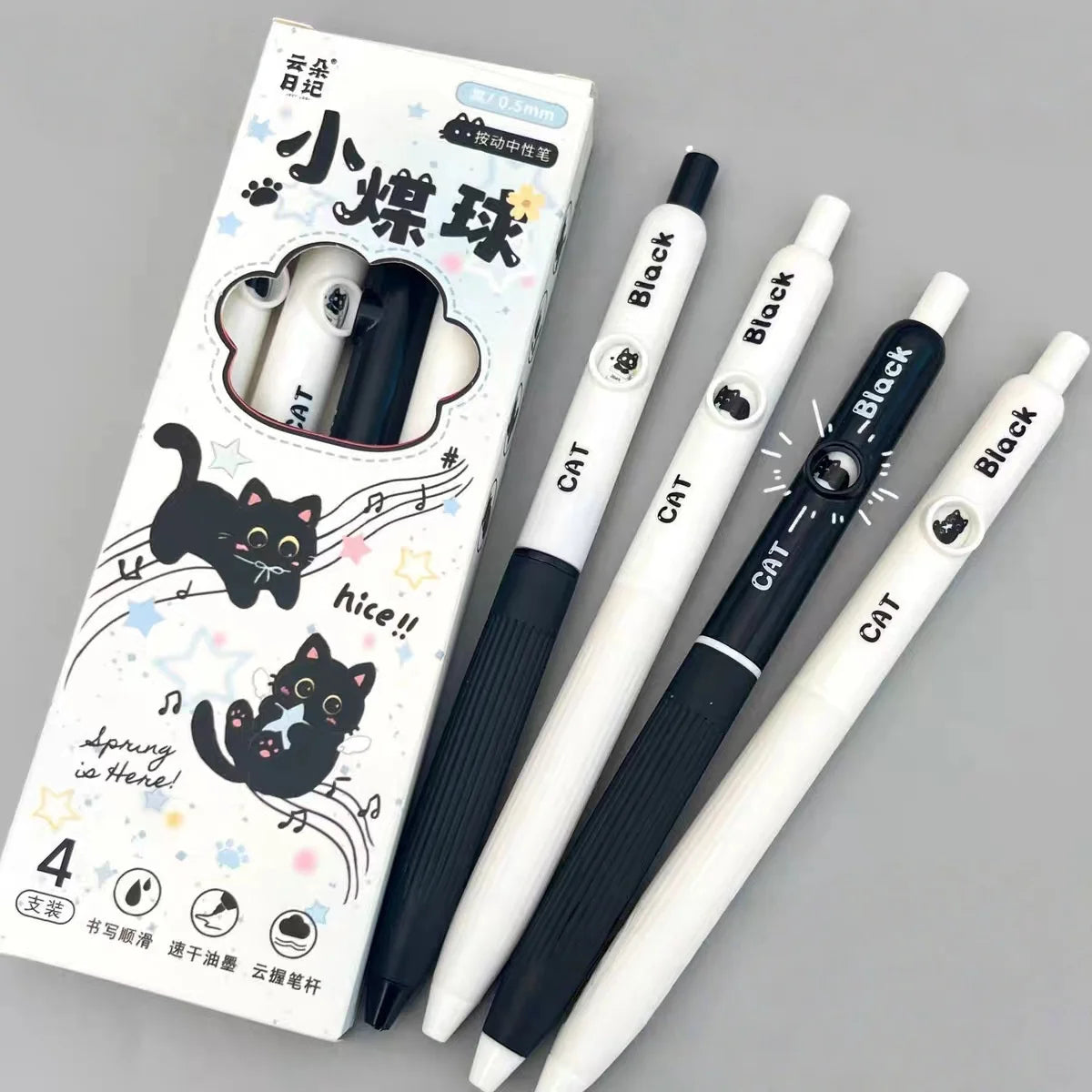 4Pcs 0.5mm Kawaii Cat Pattern Gel Pens Quick-Dry Black Ink-Smooth Writing Retractable Pens School Stationery Birthday Gift