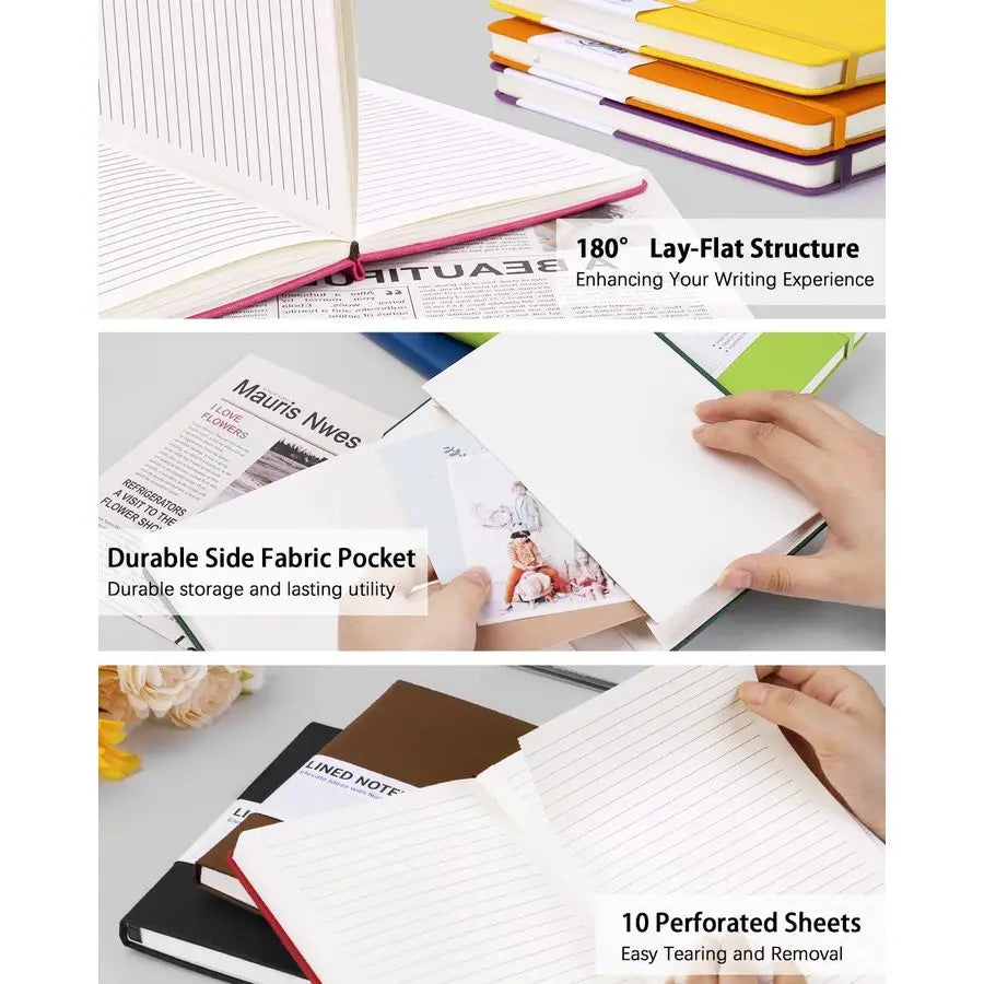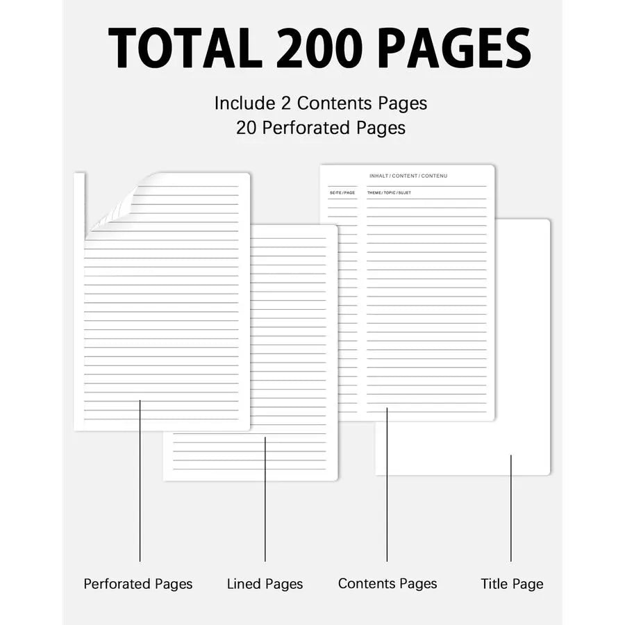 Perfect size 8.4 x 5.8classic ruled lined notebook features a durable and soft hand feel PU leather cover, 100sheets, 200 pages