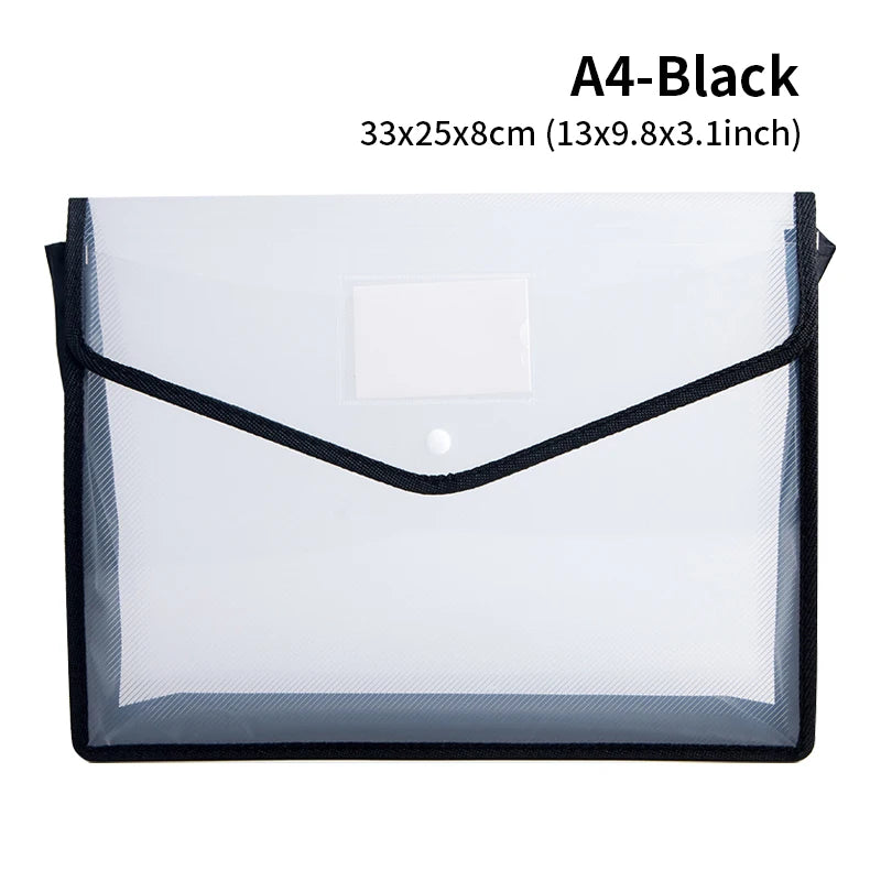 Large Capacity Waterproof File Transparent A4 Folder Press Button Plastic Data Document Bag Pocket Storage Office Supplies